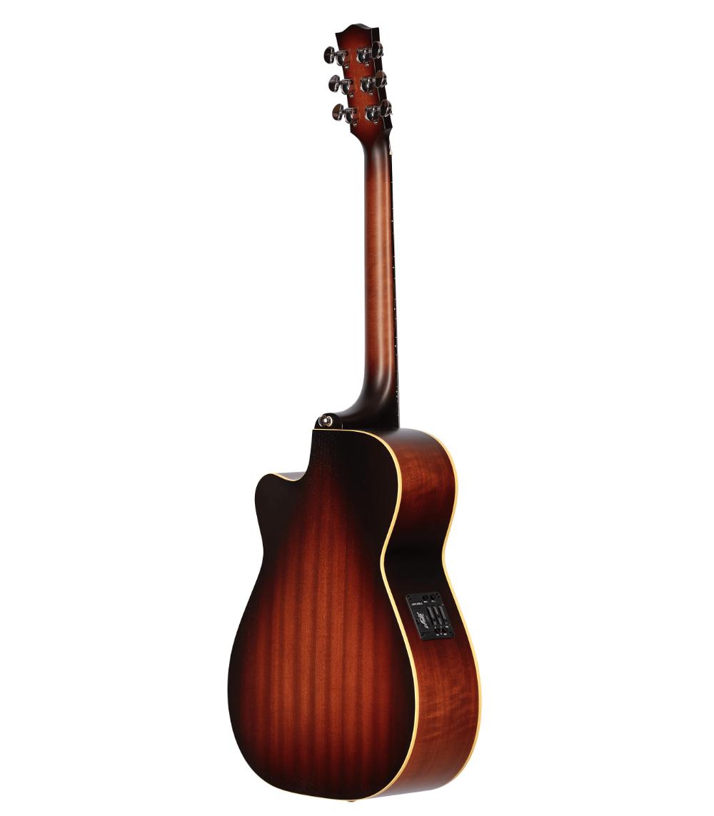 Dank des bewährten X-Bracing-Systems wird die Schwingungsübertragung der Decke maximiert, wodurch der Klang voller, kraftvoller und detaillierter wird. Der venezianische Cutaway ermöglicht zudem einen einfachen Zugang zu den hohen Lagen und erweitert die spielerische Ausdruckskraft.