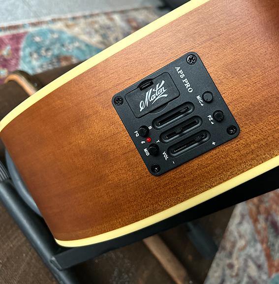 Mit dem Maton AP5 Pro Tonabnehmersystem bleibt der natürliche Klang dieser Gitarre auch verstärkt erhalten. Durch die Kombination aus Piezo- und Mikrofontechnik erfasst das System jedes Detail – von sanften, warmen Melodien bis hin zu perkussiven Anschlägen mit voller Dynamik.