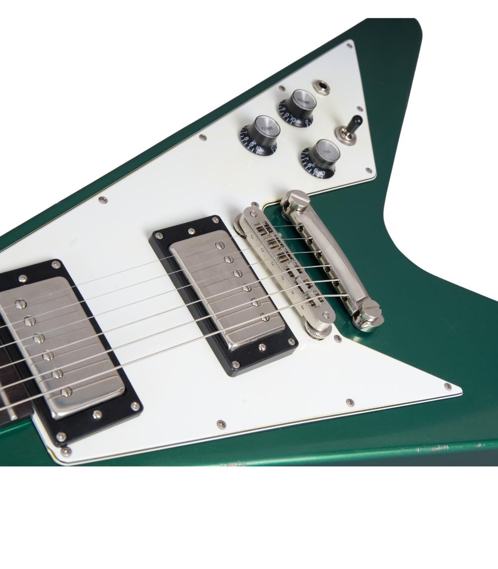 Die MAYBACH Jetwing ist unsere Homage an eine der bekanntesten E-Gitarrenformen überhaupt. Orientiert an einer frühen Version der V-Style, haben wir eine authentische Gitarre geschaffen, die sich genauso anfühlt, hervorragend klingt und spielen lässt, wie man es sich wünscht. Ausgesuchte Hölzer und Amber Pickups (in der Bridge werkelt ein eigens entwickelter Supernova Humbucker) plus hochwertige Hardware lassen Herz und Ohren eines jeden Vintage V-Fans höherschlagen.