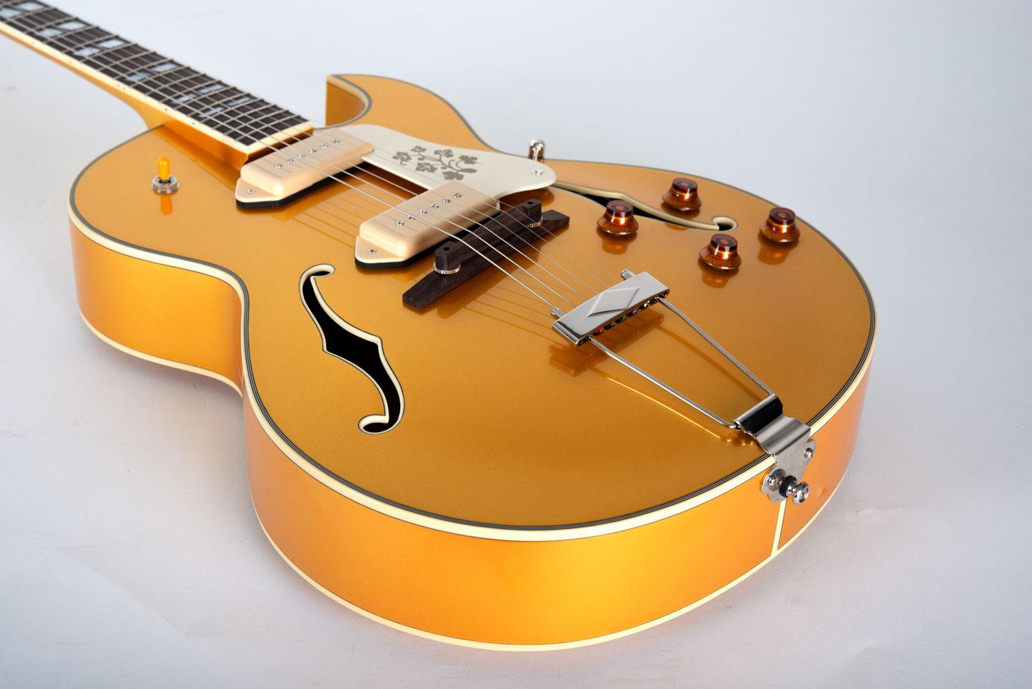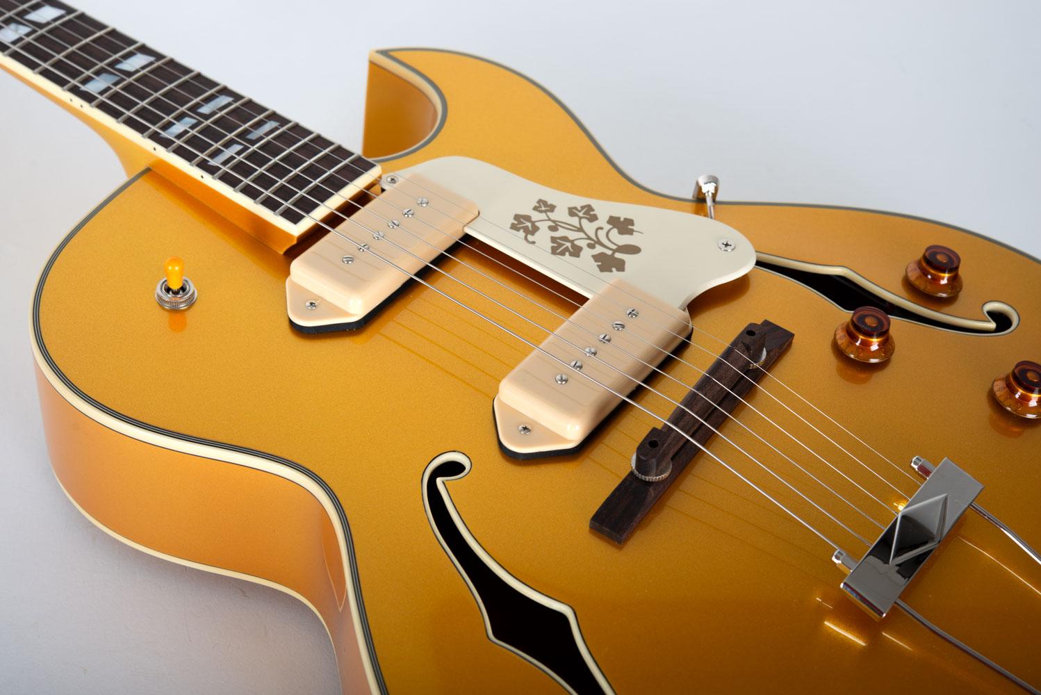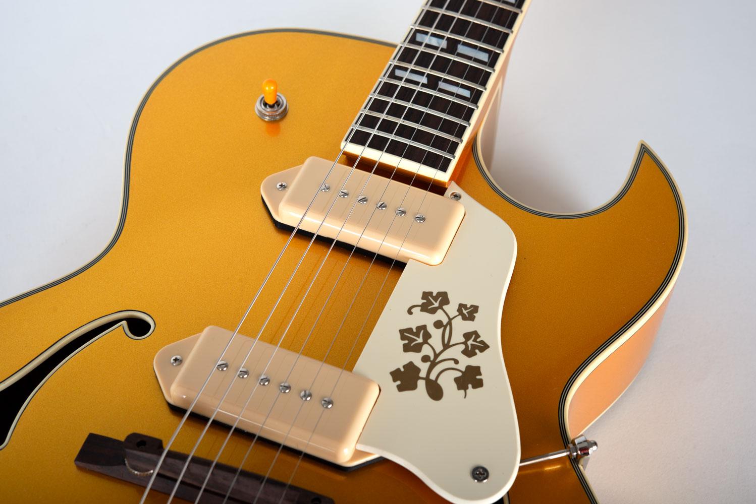 Ein Cutaway, ein Korpus aus Maple-Veneer und der Nitrocellulose-Lack rufen: „Classic Style.“ Zwei P90 Pickups liefern den passenden Ton dazu – warm, direkt und mit genau dem richtigen Maß an Grit .